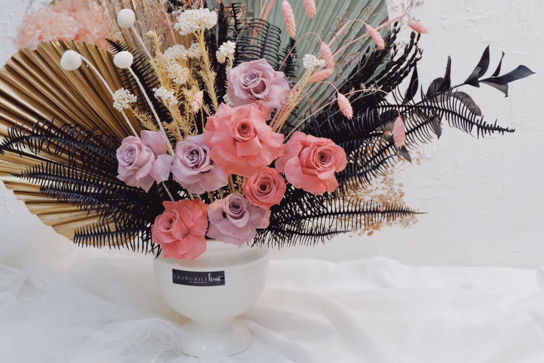 khusus buat kamu yang mau kasih hadiah ke seseorang tapi hadiah nya bisa dipajang bertahun – tahun bahkan bisa bertahan lebih lama. ini dia! vase arrangement yang menggunakan bunga preserved yaitu bunga asli yang diawetkan. ditemani dengan bunga dried sebagai pelengkapnya. cocok untuk sudut ruangan. asli, it’s worth to buy!
